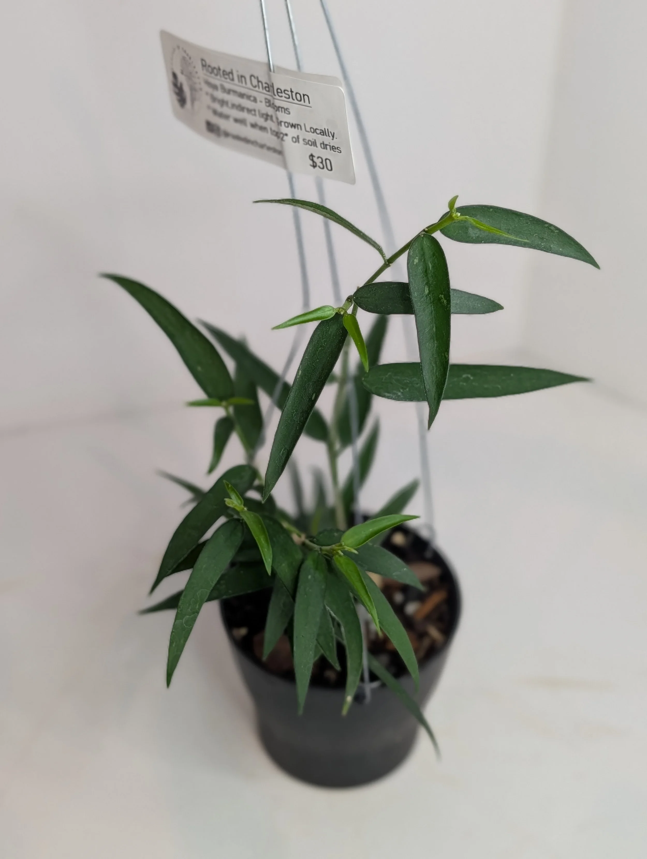 Image 1 of 3 Image 2 of 3 Image 3 of 3 Hoya Burmanica $30.00 Bright, indirect light.Water well when the soil is halfway dry. Non-toxic to pets.Grown Locally. Blooms. Add To Cart Added! Bright, indirect light.Water well when the soil is halfway dry. Non-toxic to pets.Grown Locally. Blooms.