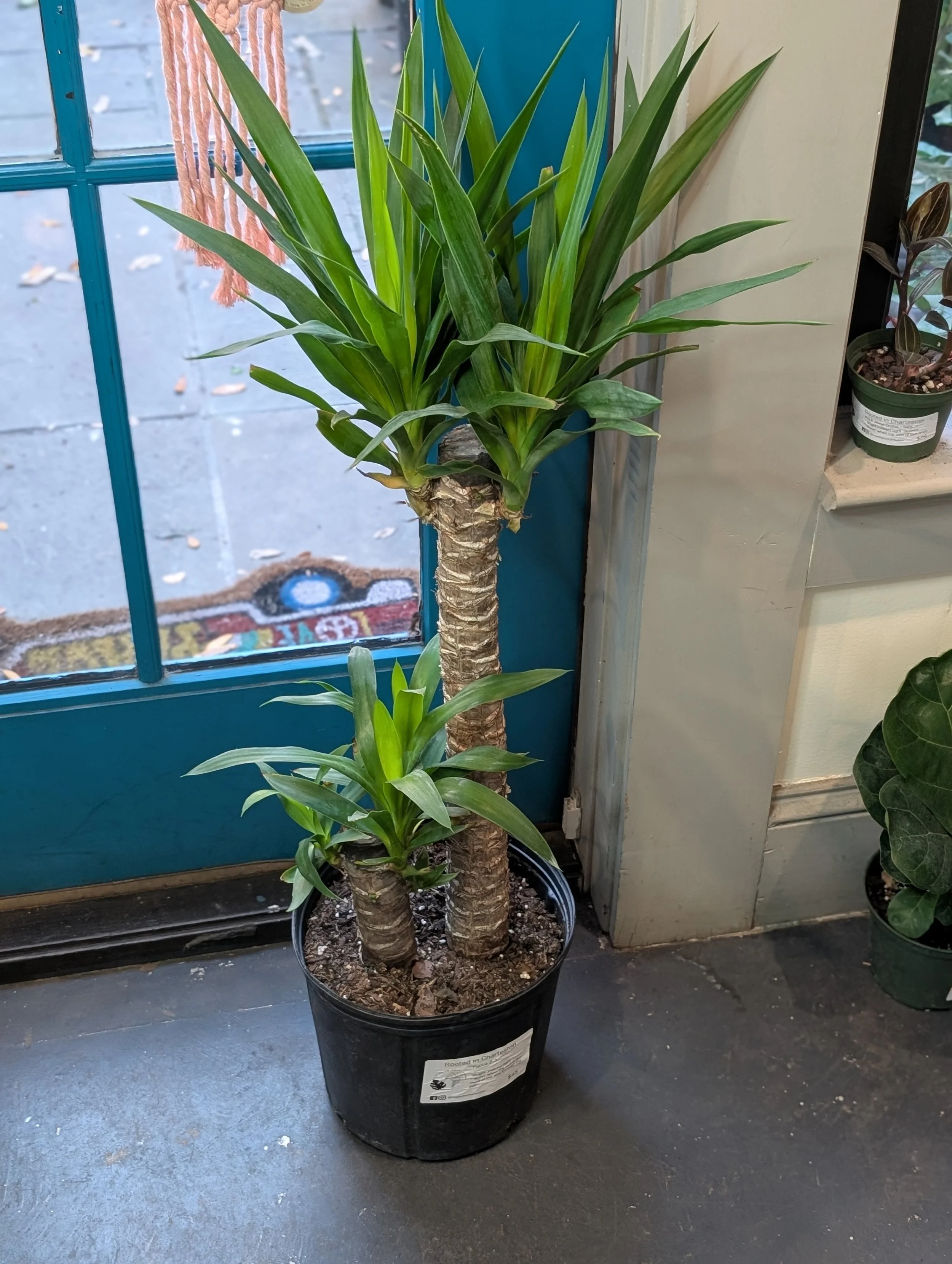 Image 1 of 2 Image 2 of 2 Yucca 2-1 $45.00 10” pot.Bright to medium light. Water well when the soil dries most of the way through the pot. Add To Cart Added! 10” pot.Bright to medium light. Water well when the soil dries most of the way through the pot.