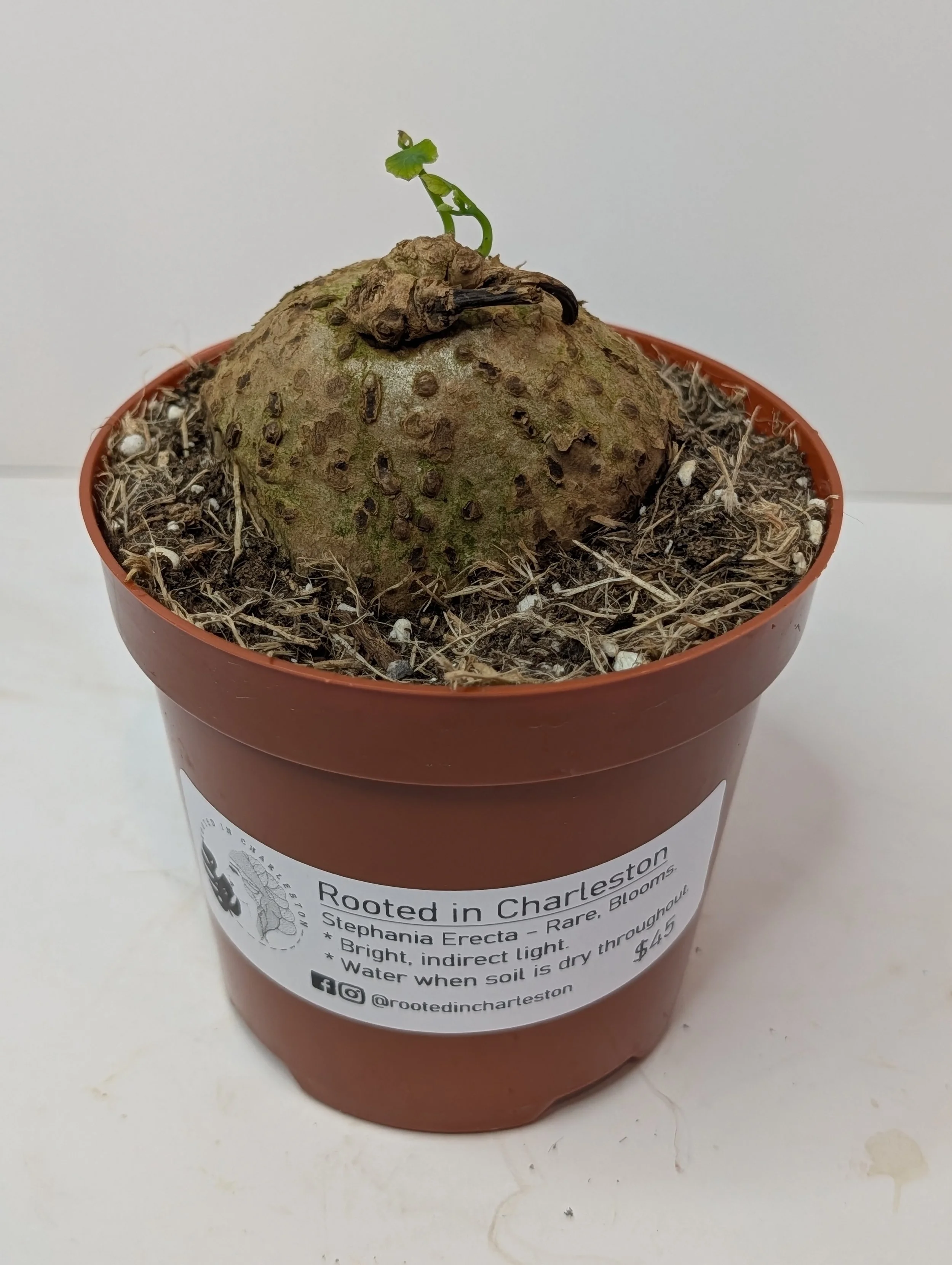Image 1 of 3 Image 2 of 3 Image 3 of 3 Stephania Erecta $45.00 4” pot Bright, indirect lightWater well when soil is dry throughout. Rare variety. Add To Cart Added! 4” pot Bright, indirect lightWater well when soil is dry throughout. Rare variety.