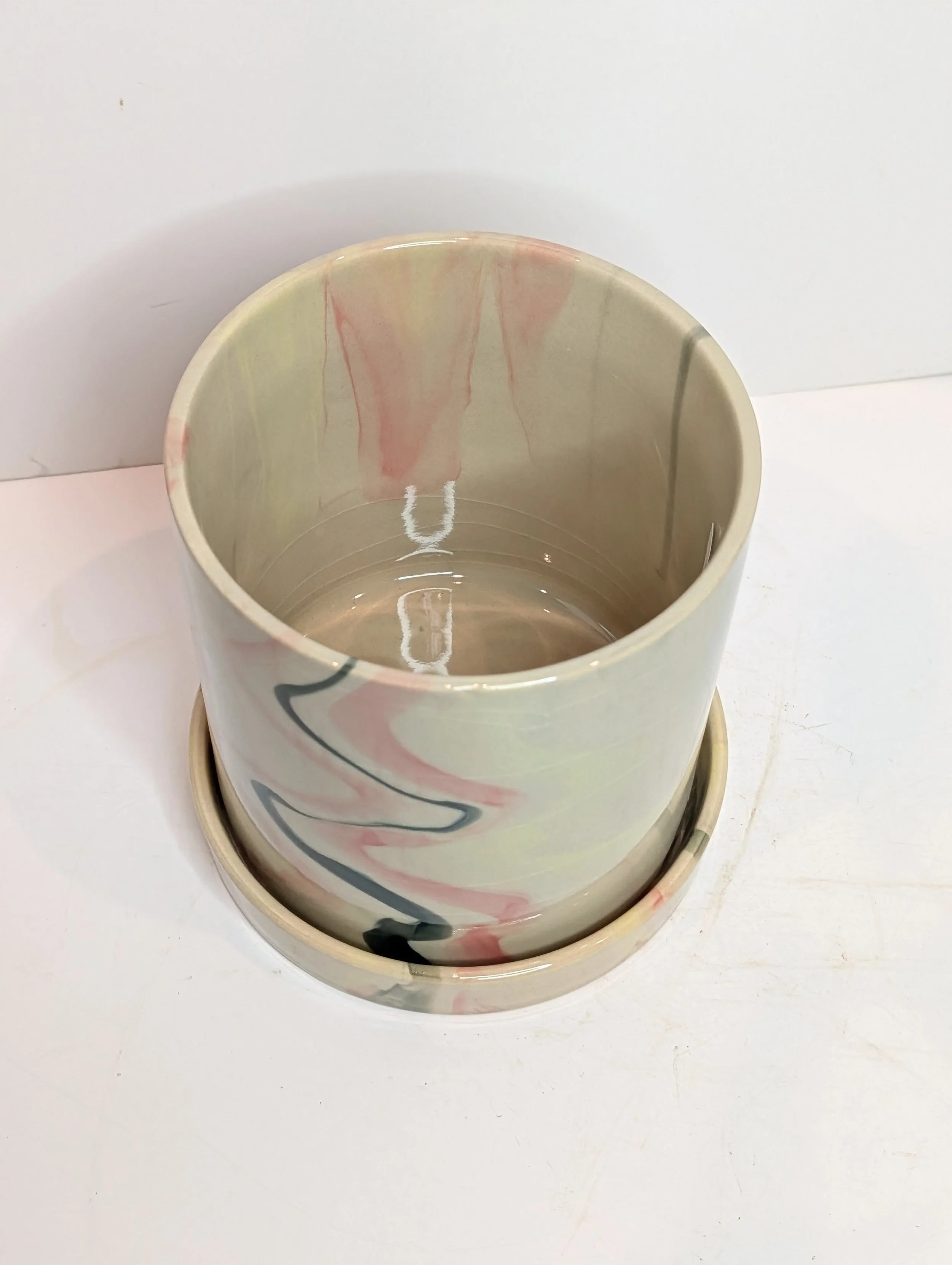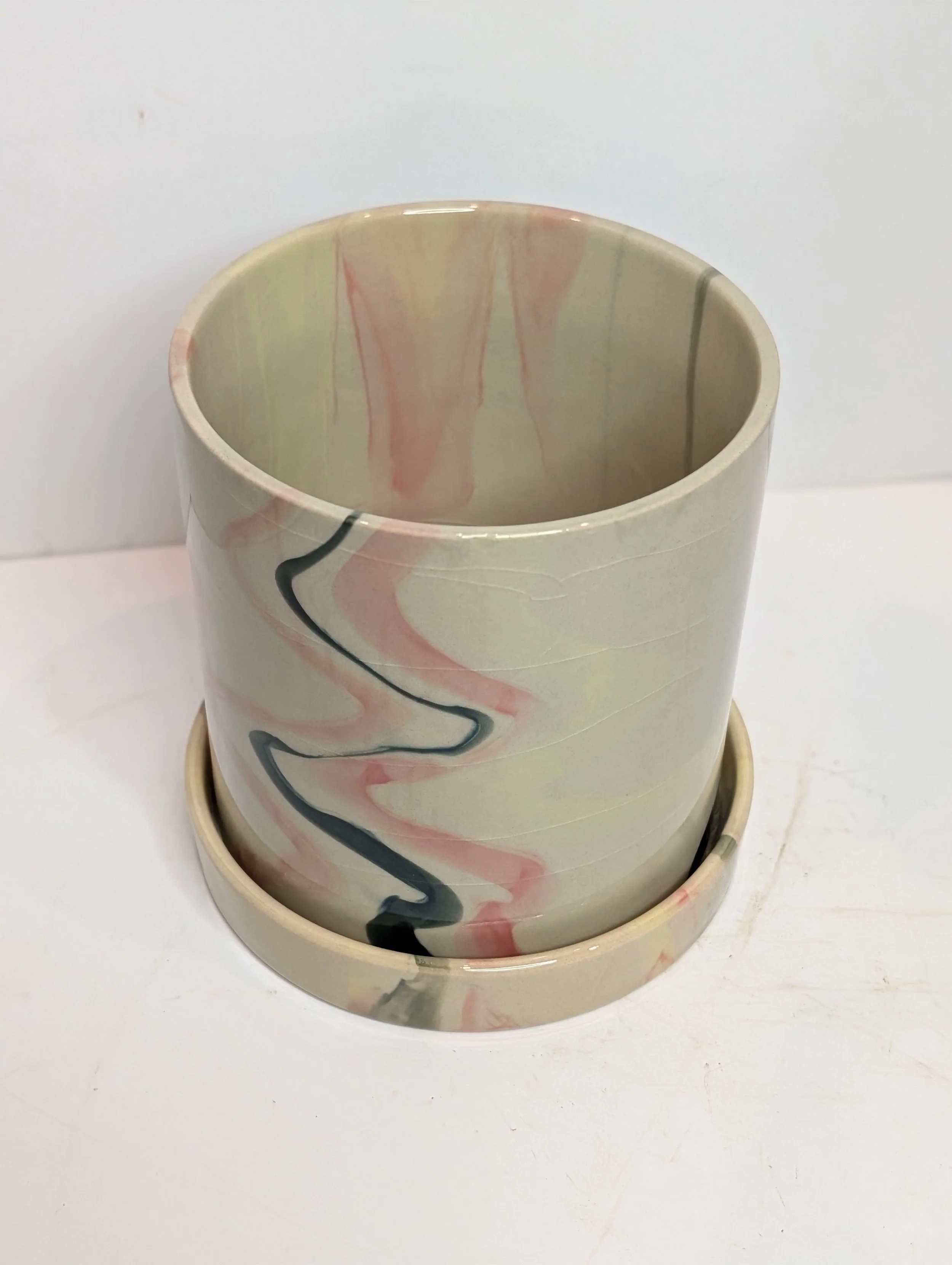 Image 1 of 2 Image 2 of 2 Tie Dye Swirl Planter $26.00 5.5” ceramic pot with saucer. Has drainage. Quantity: Add To Cart Added! 5.5” ceramic pot with saucer. Has drainage.