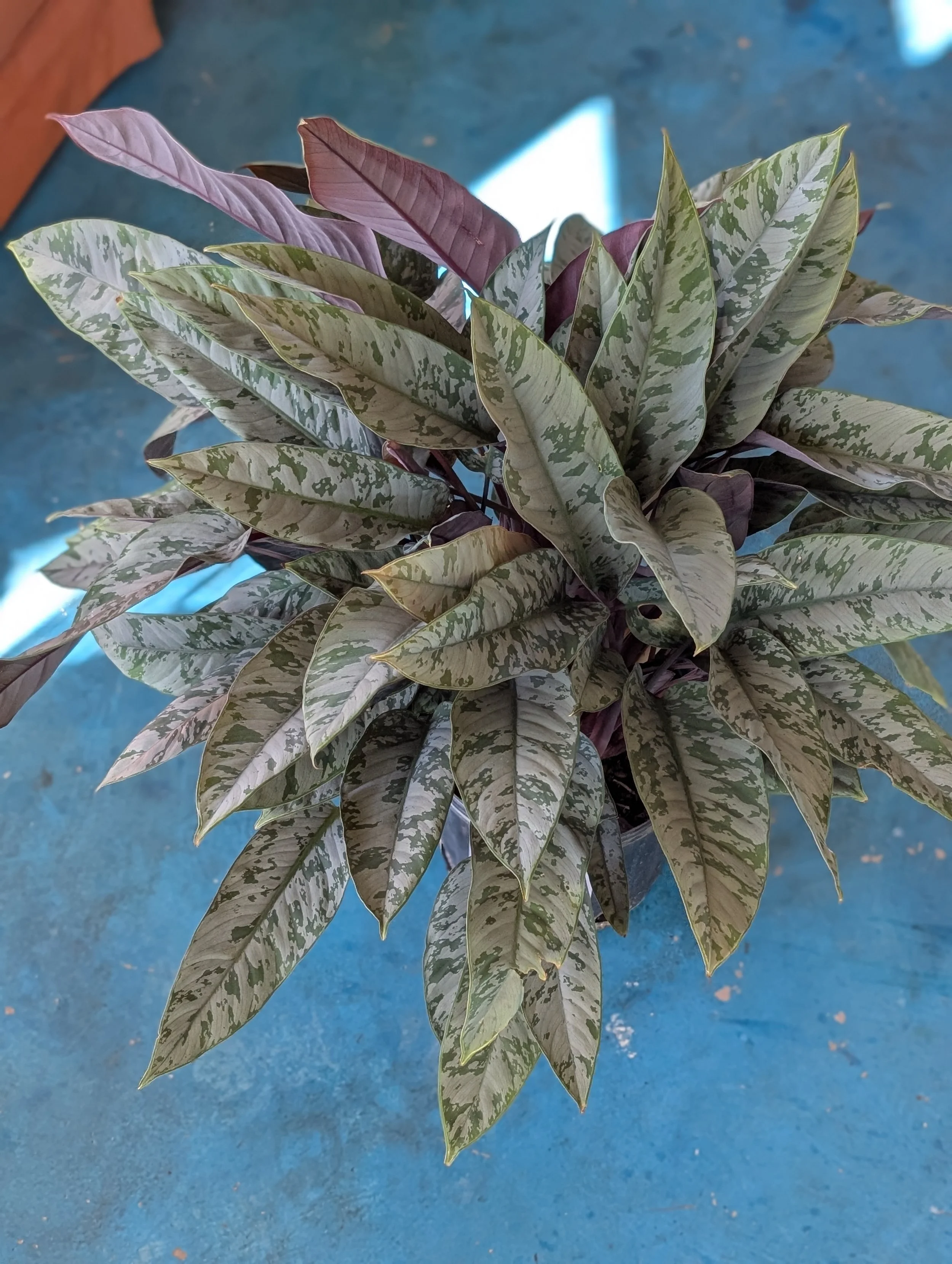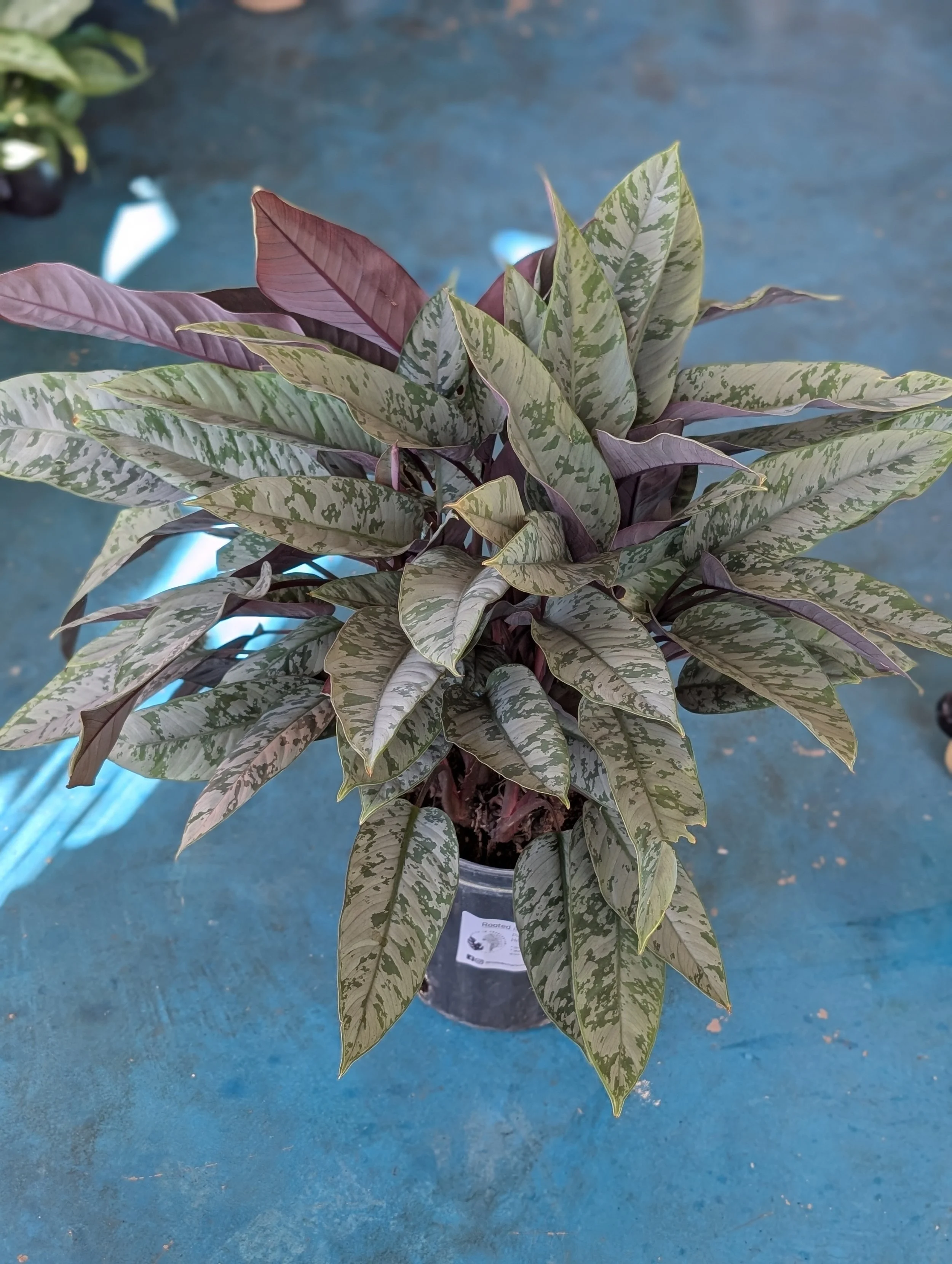 Image 1 of 3 Image 2 of 3 Image 3 of 3 Purple Sword Homalomena $50.00 8” pot.Bright, indirect light.Water well when the top inch of soil dries. Add To Cart Added! 8” pot.Bright, indirect light.Water well when the top inch of soil dries.