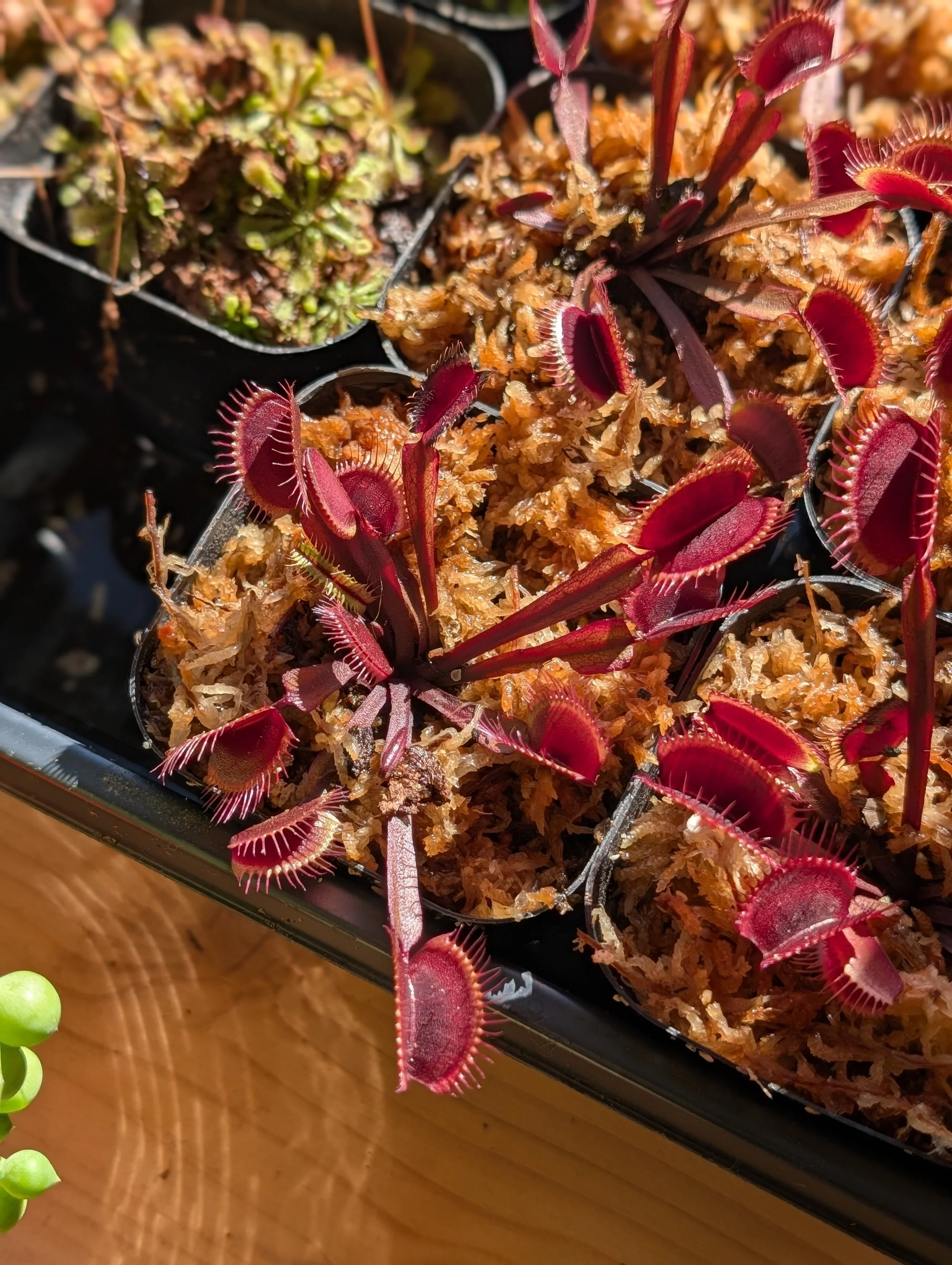 Image 1 of 3 Image 2 of 3 Image 3 of 3 Red Venus Fly Trap $15.00 Grown locally. 3” pot.Carnivorous.Bright light required. Must stay consistently watered. Quantity: Add To Cart Added! Grown locally. 3” pot.Carnivorous.Bright light required. Must stay consistently watered.