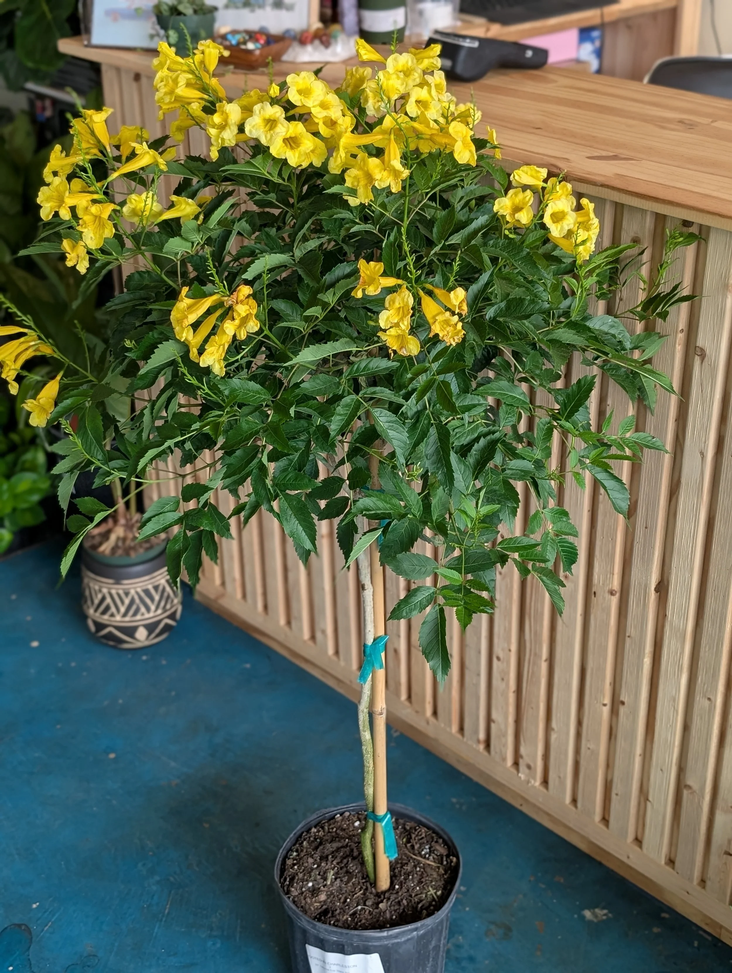 Image 1 of 3 Image 2 of 3 Image 3 of 3 Tecoma Esperanza $68.00 10” pot.Bright light required. Add To Cart Added! 10” pot.Bright light required.