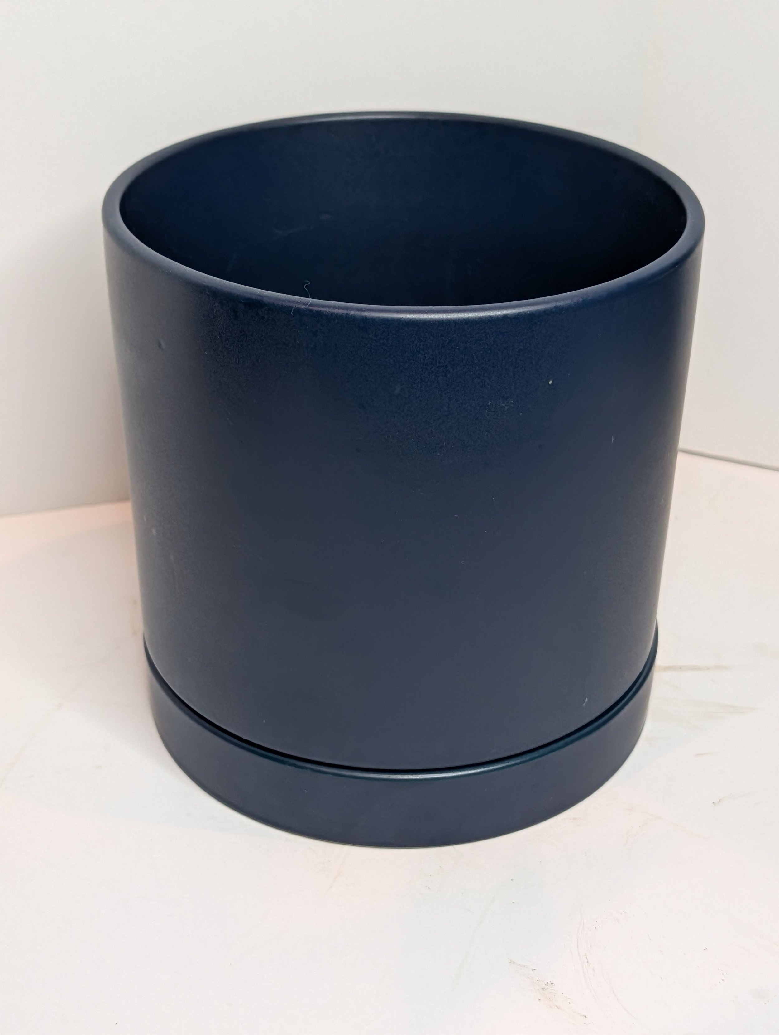 Image 1 of 1 Navy Planter $36.00 7” ceramic planter with saucer. Has drainage. Quantity: Add To Cart Added! 7” ceramic planter with saucer. Has drainage.