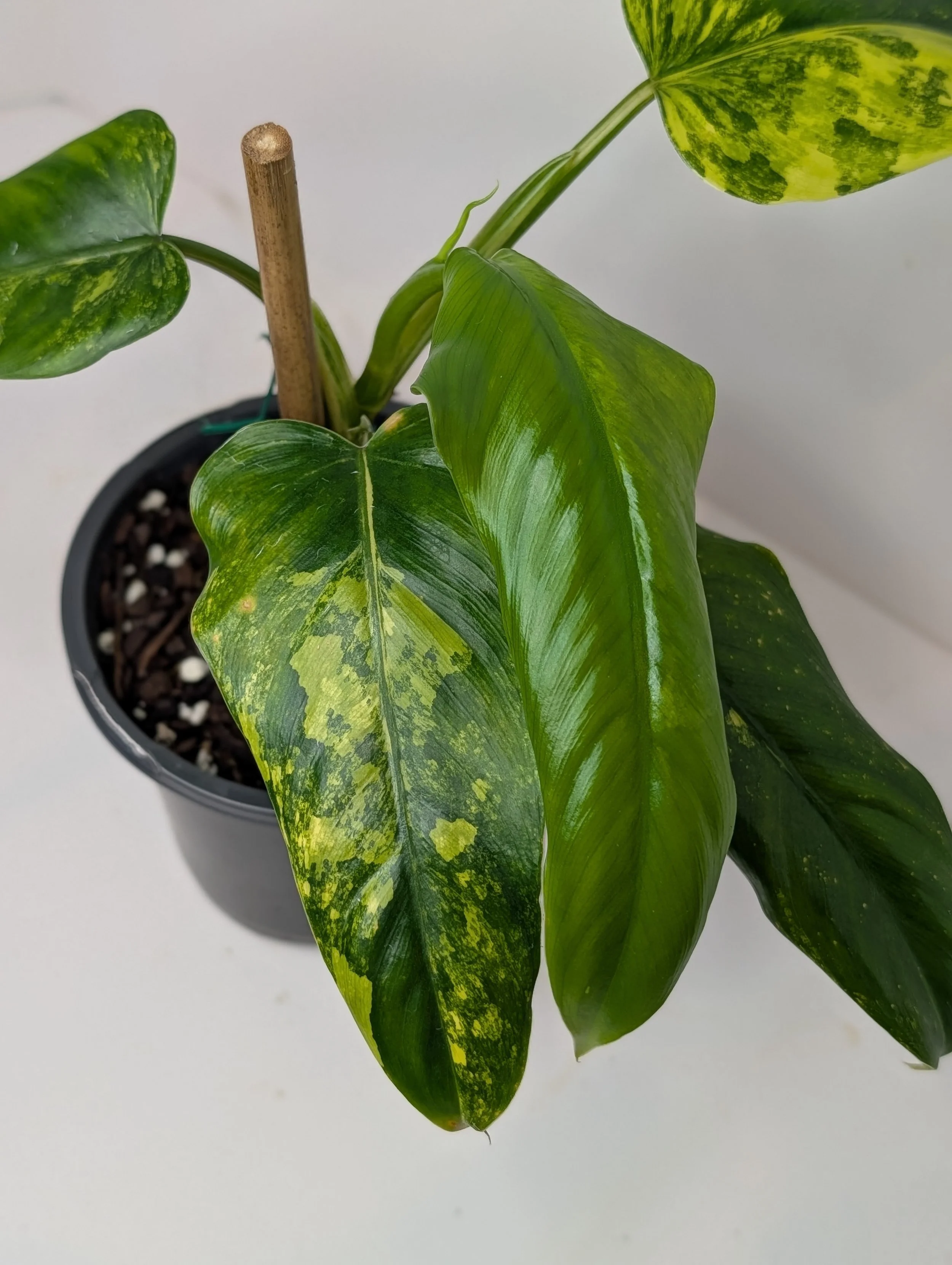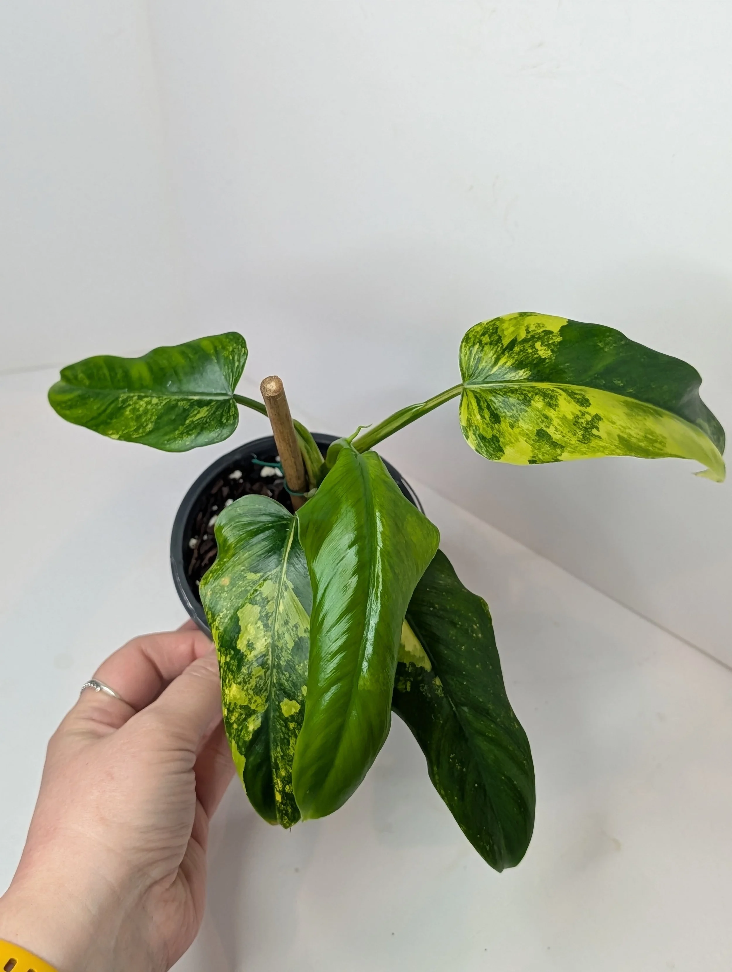 Image 1 of 4 Image 2 of 4 Image 3 of 4 Image 4 of 4 Philodendron Domesticum Variegated $85.00 4” pot.Rare variety.Bright, indirect light.Water well when the top 2” of soil dries.Grown Locally. Add To Cart Added! 4” pot.Rare variety.Bright, indirect light.Water well when the top 2” of soil dries.Grown Locally.