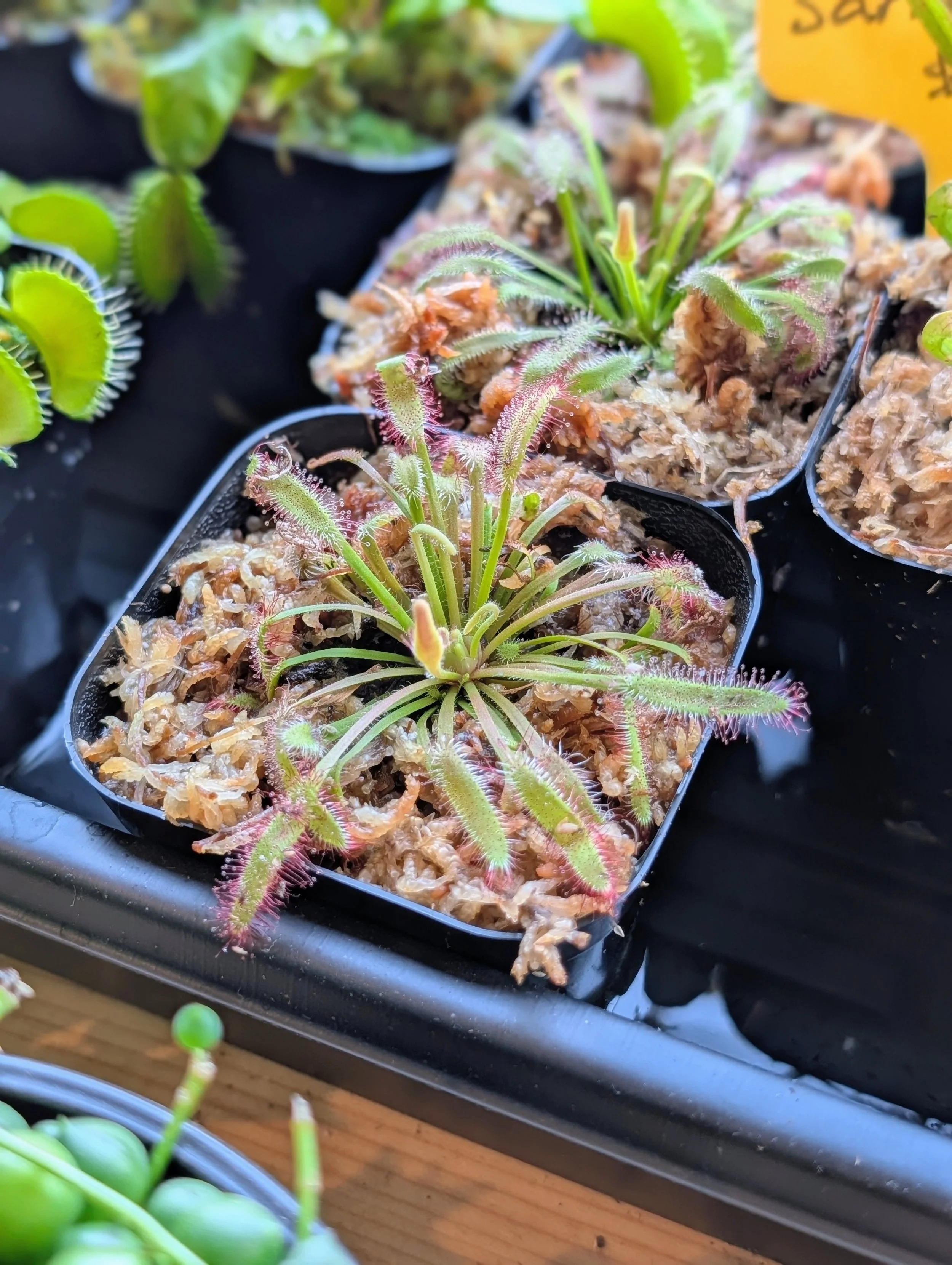 Image 1 of 2 Image 2 of 2 Cape Sundew $12.00 Grown locally. Drosera Capensis. Carnivorous.Bright light required. Add To Cart Added! Grown locally. Drosera Capensis. Carnivorous.Bright light required.