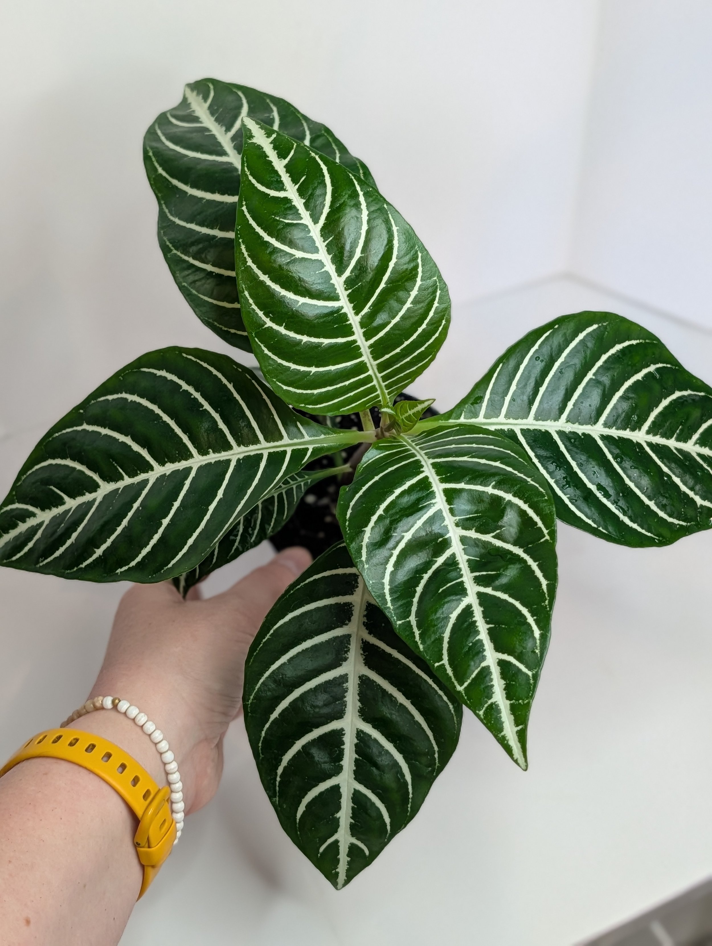 Image 1 of 3 Image 2 of 3 Image 3 of 3 Aphelandra Zebra $16.00 4” pot.Bright to medium, indirect light. Water well to maintain consistently moist soil. Blooms.Non-toxic to pets. Add To Cart Added! 4” pot.Bright to medium, indirect light. Water well to maintain consistently moist soil. Blooms.Non-toxic to pets.