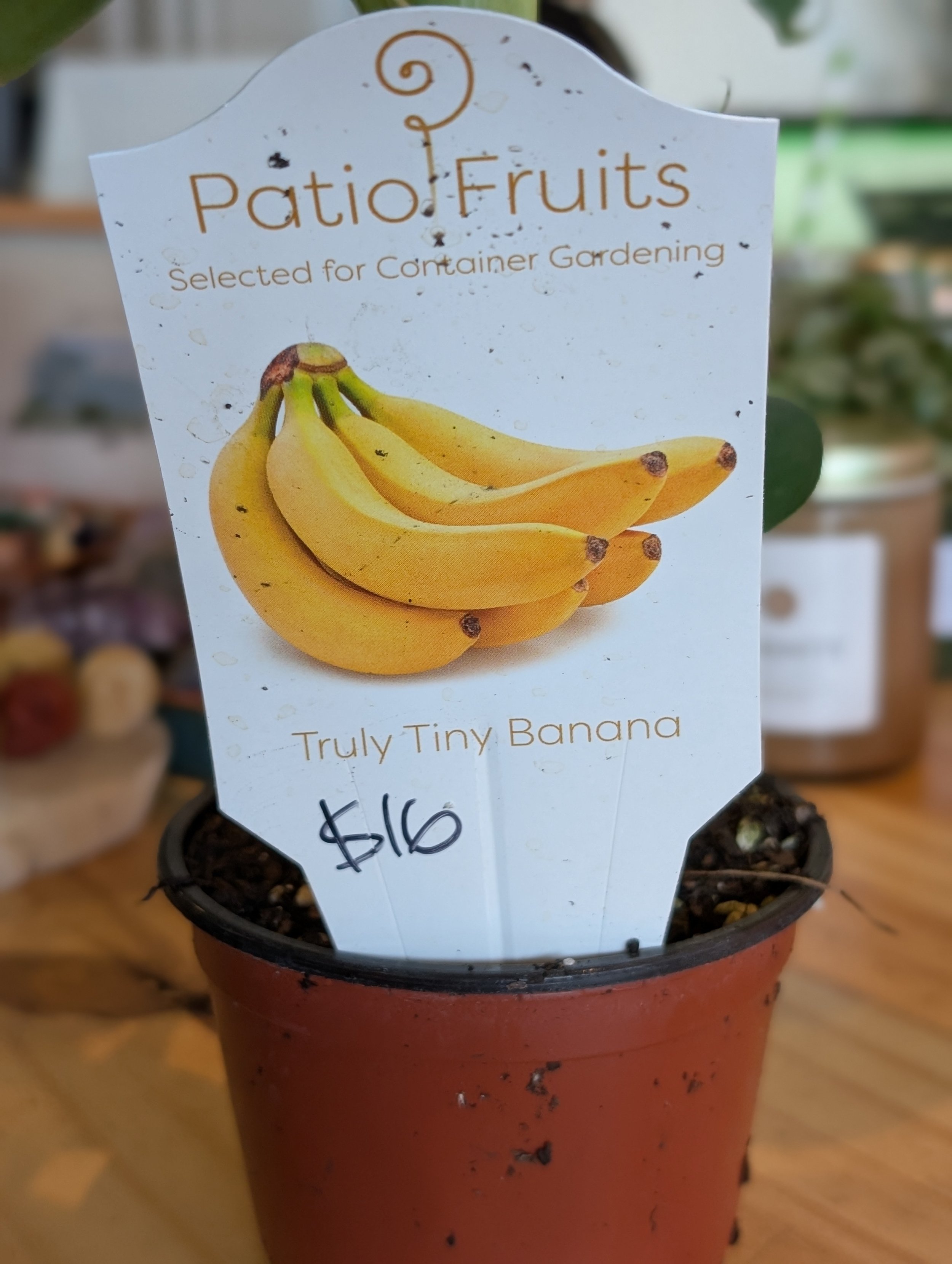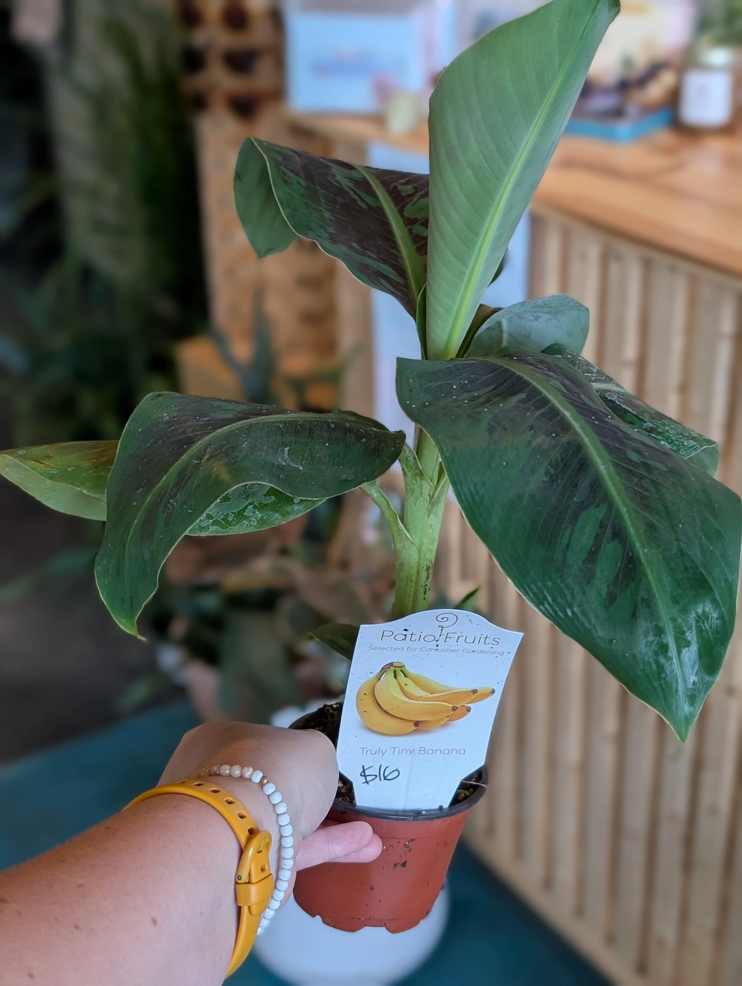 Image 1 of 4 Image 2 of 4 Image 3 of 4 Image 4 of 4 Truly Tiny Banana $16.00 4” pot.Bright, indirect light indoors, partial shade outdoors. Water well to keep soil moist. Add To Cart Added! 4” pot.Bright, indirect light indoors, partial shade outdoors. Water well to keep soil moist.